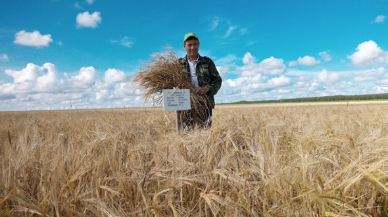 На фото глава КФХ Лысов В.А. на опытном поле перед уборкой ячменя.
