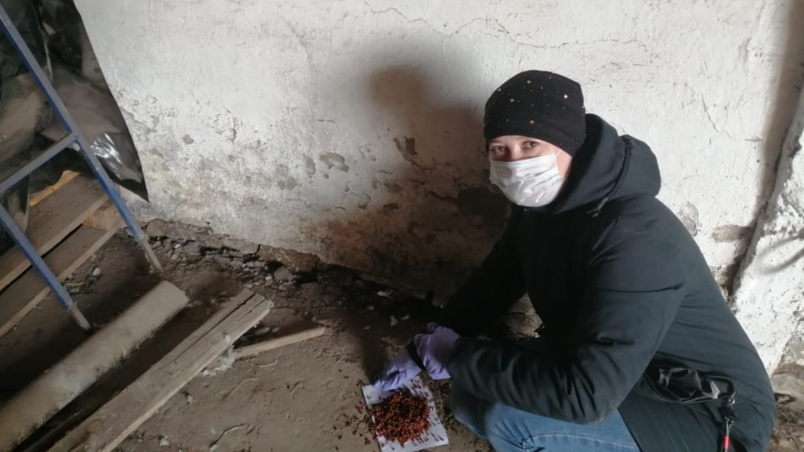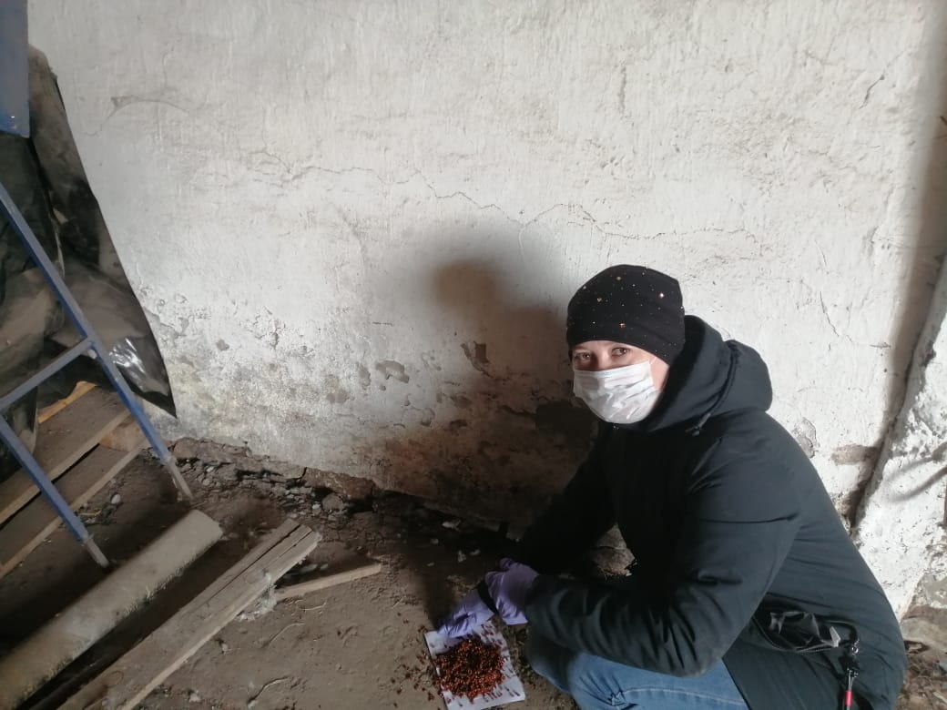 На фото: агроном 1 категории Бикбулатова Г.Ф. Сармановского РО раскладывает отравленную приманку на территории зерноскладов в КФХ Закиров И.С. ООО А/Ф «Нуркеево».