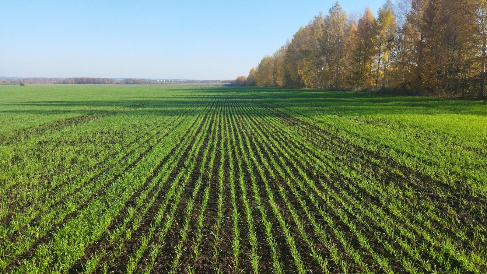 Озимые культуры находятся в фазе 2-3-х листьев – кущения. Средняя высота растений колеблется от 10 до 25 см, количество растений составляет от 140 до 600 растений на 1 м2. Состояние посевов хорошее.